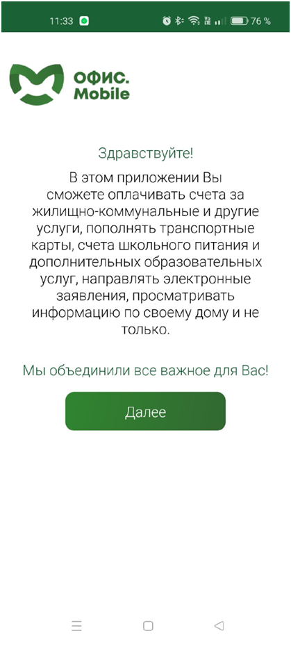 Данное мобильное приложение предназначено для оплаты счетов по Вашим адресам за жилищно-коммунальные и другие услуги, пополнения транспортных карт, счетов школьного питания и дополнительных образовательных услуг, просмотра информации по дому, оформления электронных заявлений, сохранения копий оплаченных чеков, а также передачи показаний счетчиков.