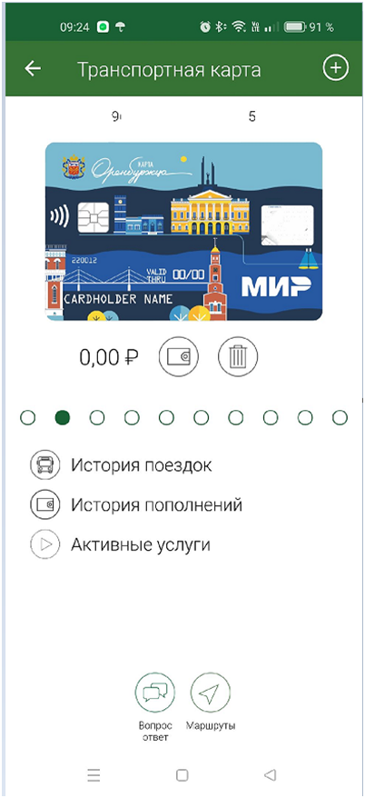 В разделе «Транспорт» Вы можете: пополнить свою транспортную карту, просмотреть историю пополнений и поездок, уточнить маршруты и время их прибытия.