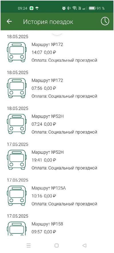 Рис.26-Экран разделов История поездок и пополнений.