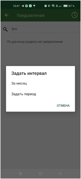 Рис. 27-Окно выбора интервала для просмотра уведомлений