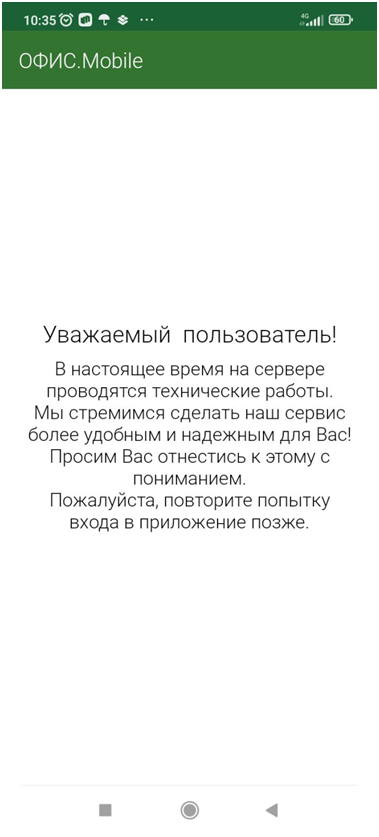 Если ошибка содержит информацию о проводимых технических работах и недоступности приложения в данный момент, то повторите, пожалуйста, попытку входа в приложение позднее. Проводимые работы обычно занимают по несколько часов и нужны, чтобы сделать наш сервис более удобным и надежным для Вас.